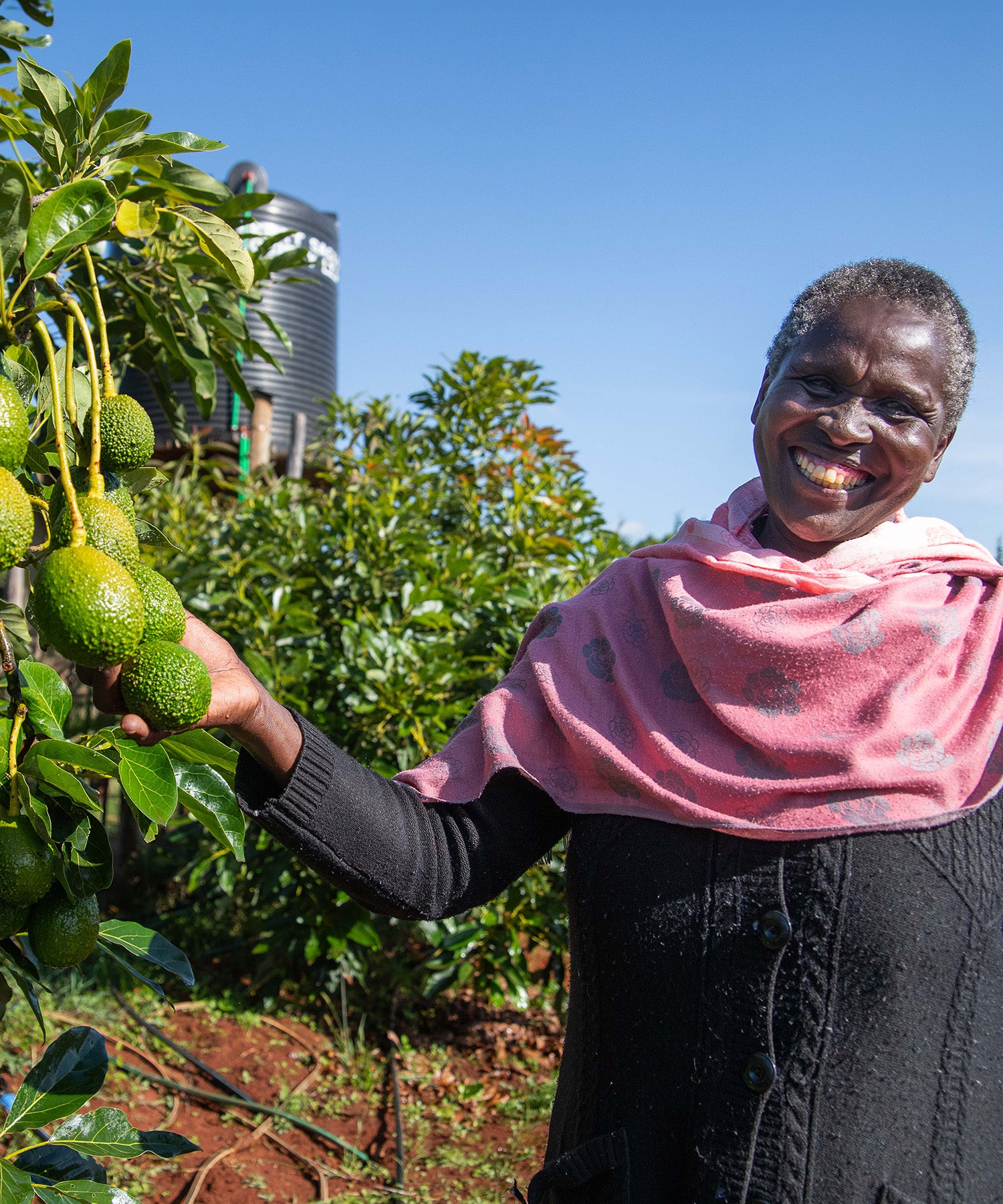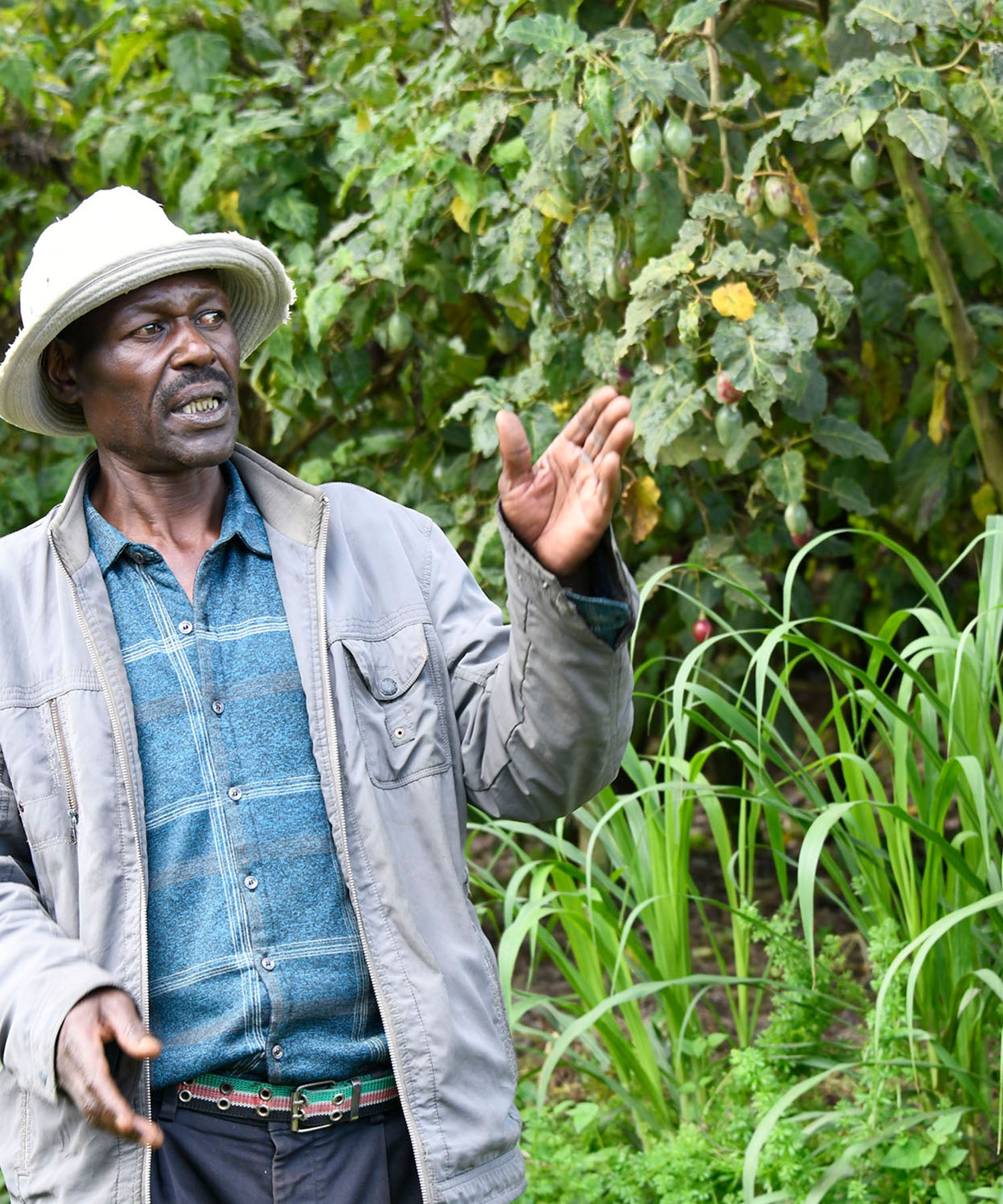 In the photo: Boniface Mbuthiaarm in Thika, Kenya. A participant in the project for four years, he has planted 200 avocado trees on his tea plantation. These new trees have improved the soil, boosted harvests, and brought birds and butterflies back to the area.