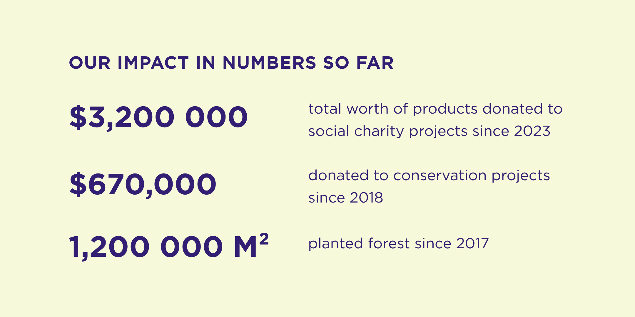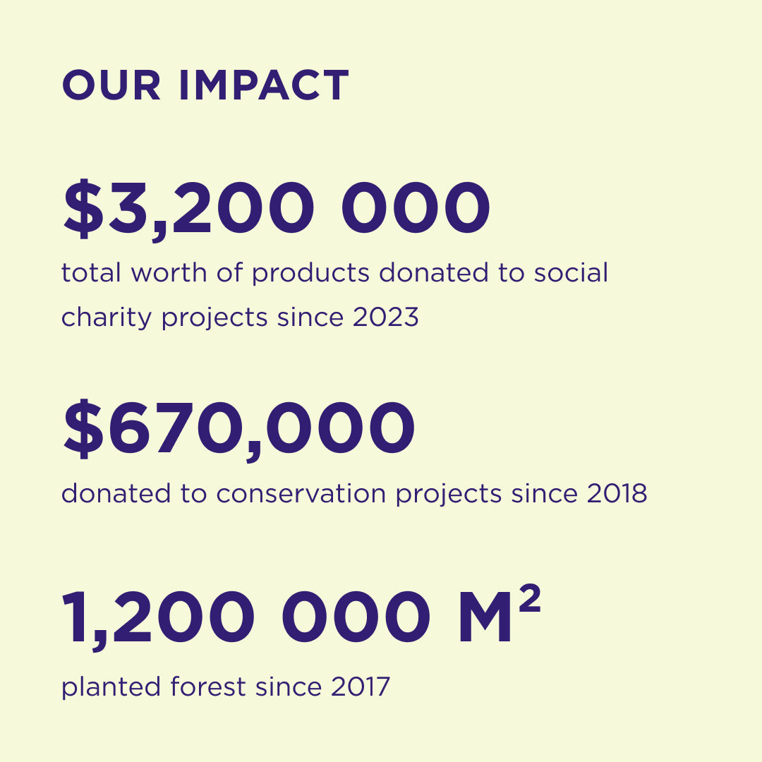 Each year, we calculate the total CO2 emissions from our packaging and operations, and by the end of the year, we offset an equal amount.